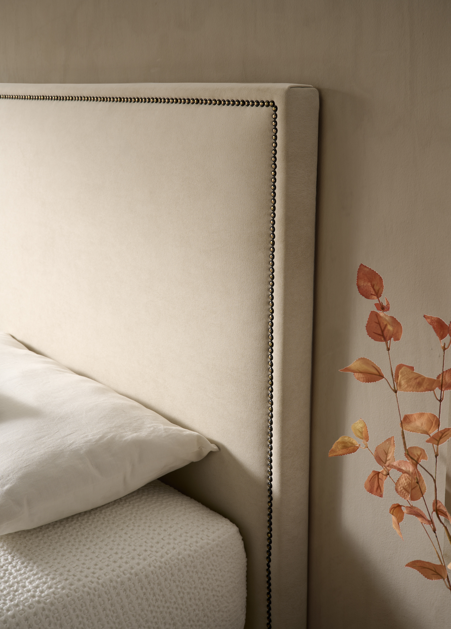 Cabecero tapizado CON TACHUELAS LATON ROMANTICO DE SERIE.