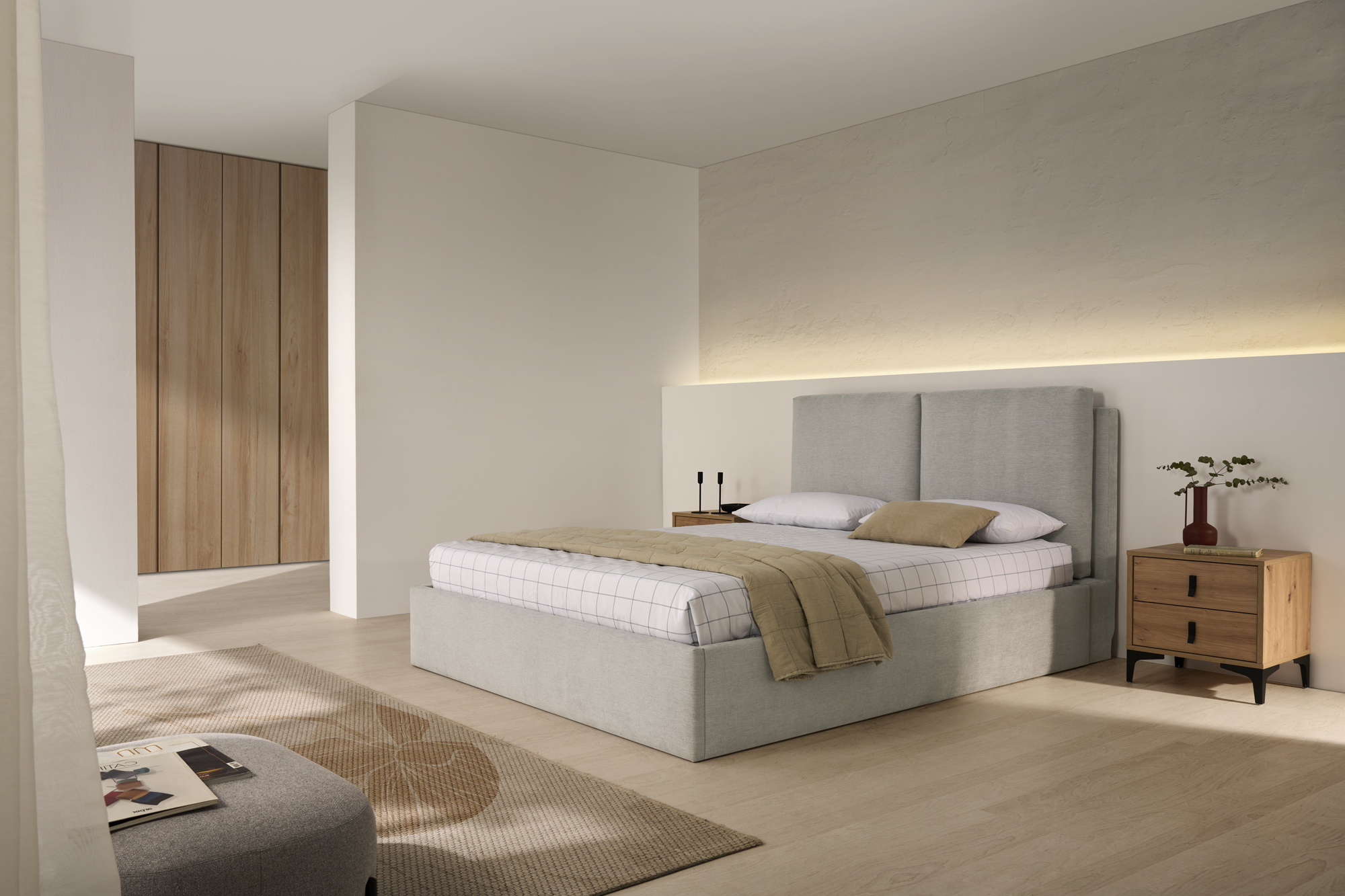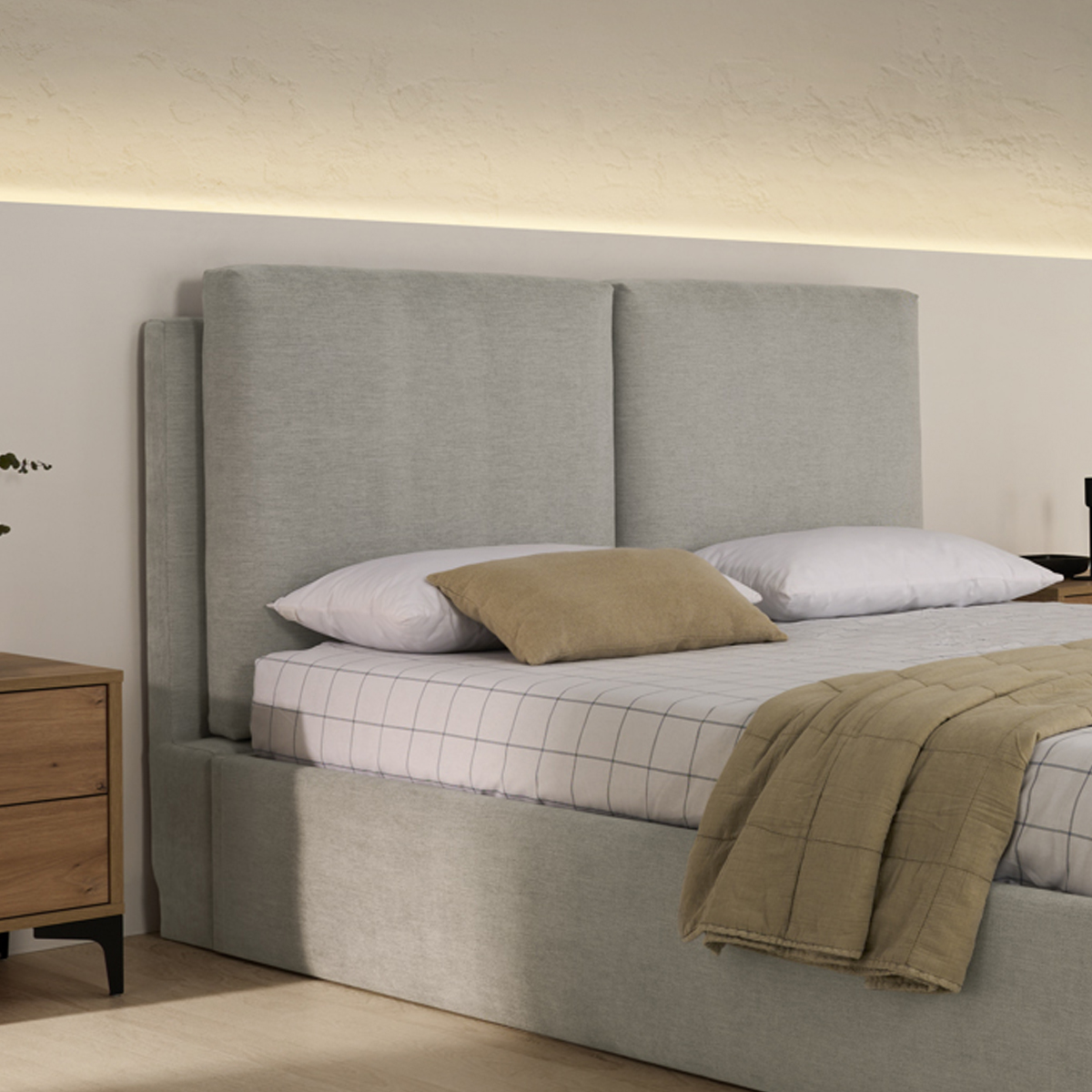 Cabecero tapizado CON ALMOHADAS FIJAS.