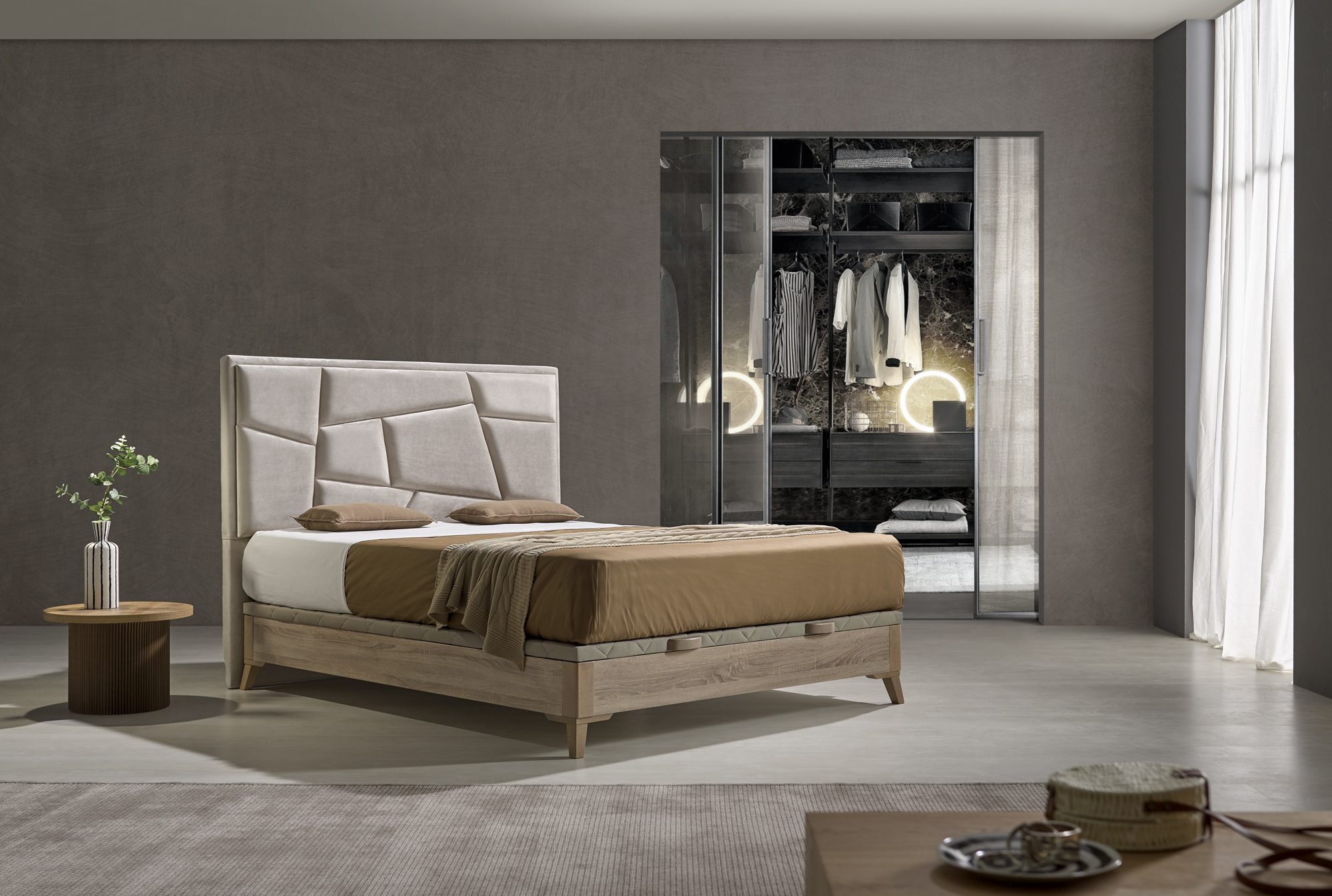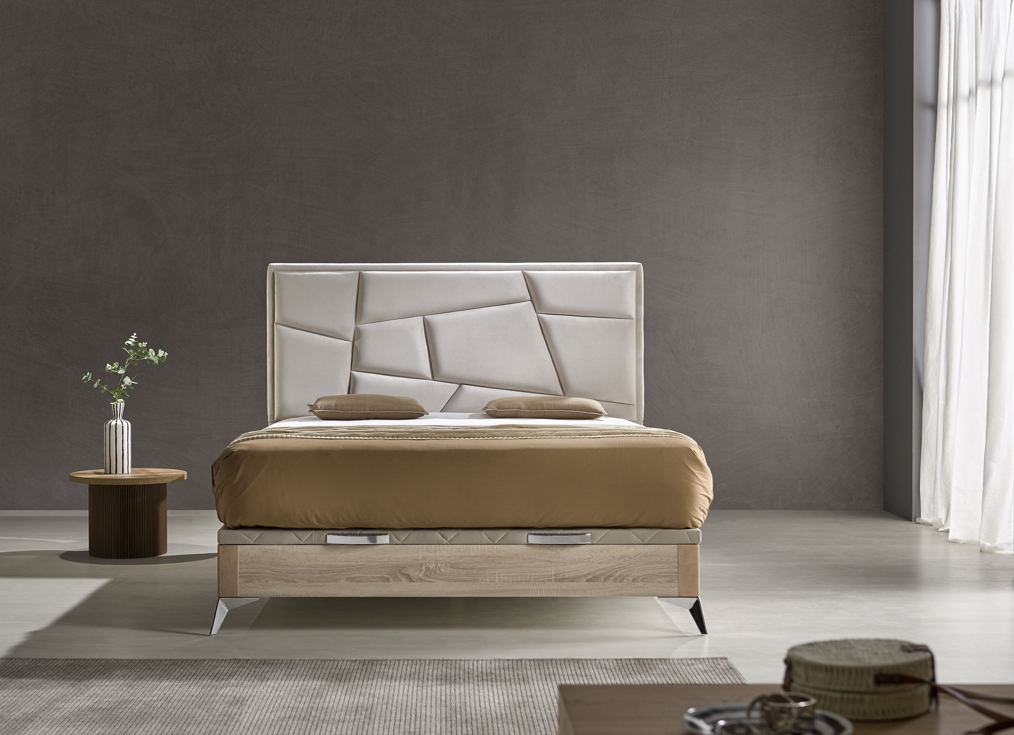Cabecero tapizado CON PLAFONES GEOMETRICOS.