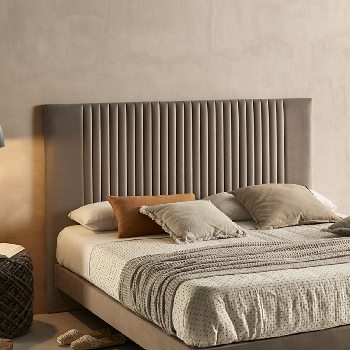 Cabecero tapizado CON DETALLE COSTURA VERTICALES.