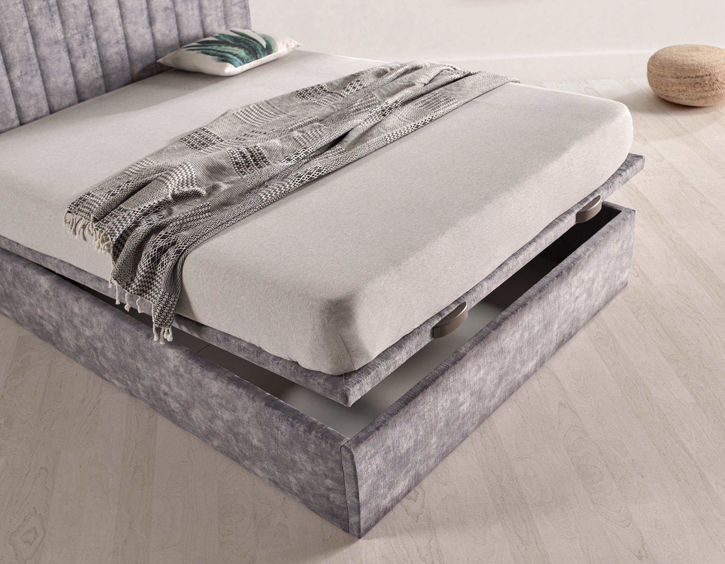 Opciones disponibles : Apertura lateral, tapa partida, tapa TOP, somier tapizado, bisagra doble pistón, patas metálicas, apertura motorizada, guardapolvo, zócalo, con ruedas y cubrebisagras.