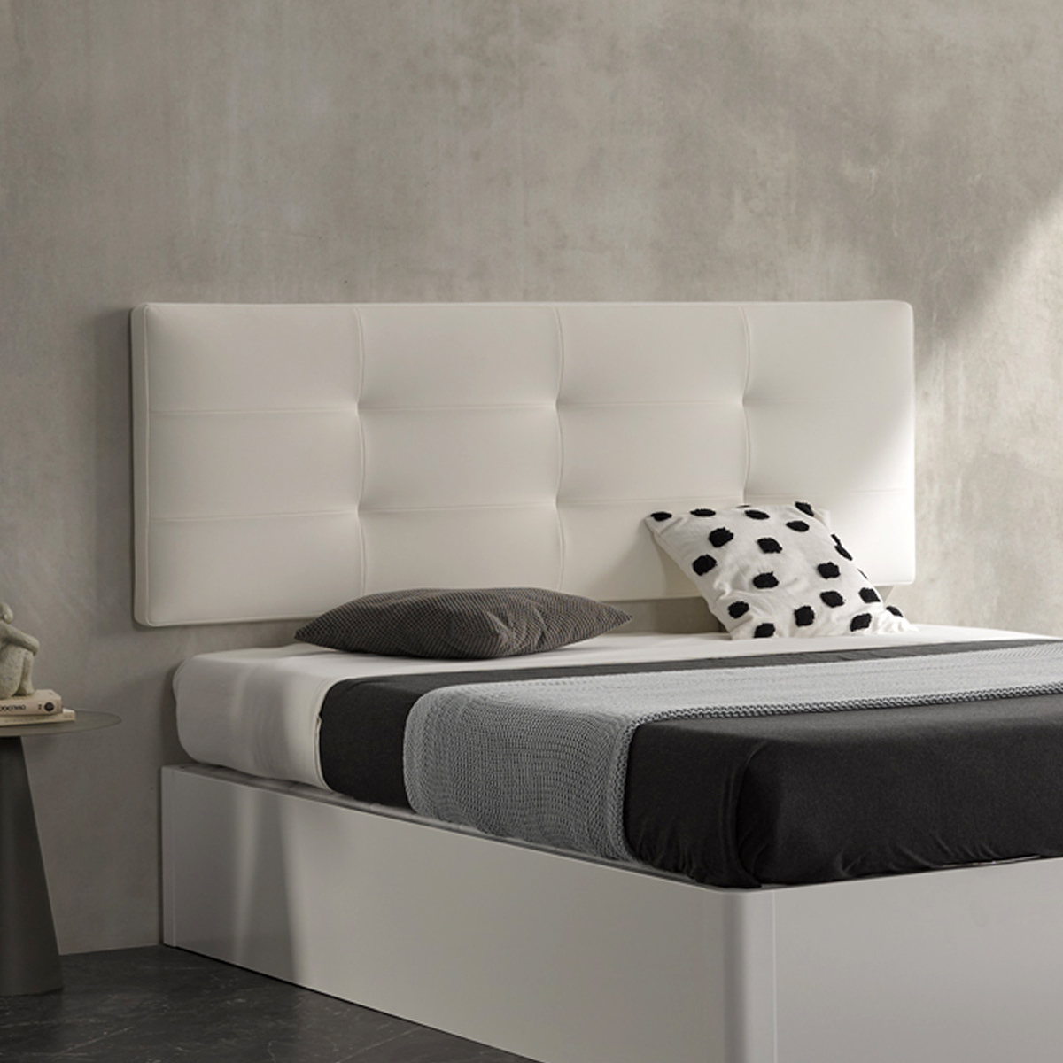 Cabecero tapizado CON DETALLES COSTURA RECTANGULOS Y TIRONES.