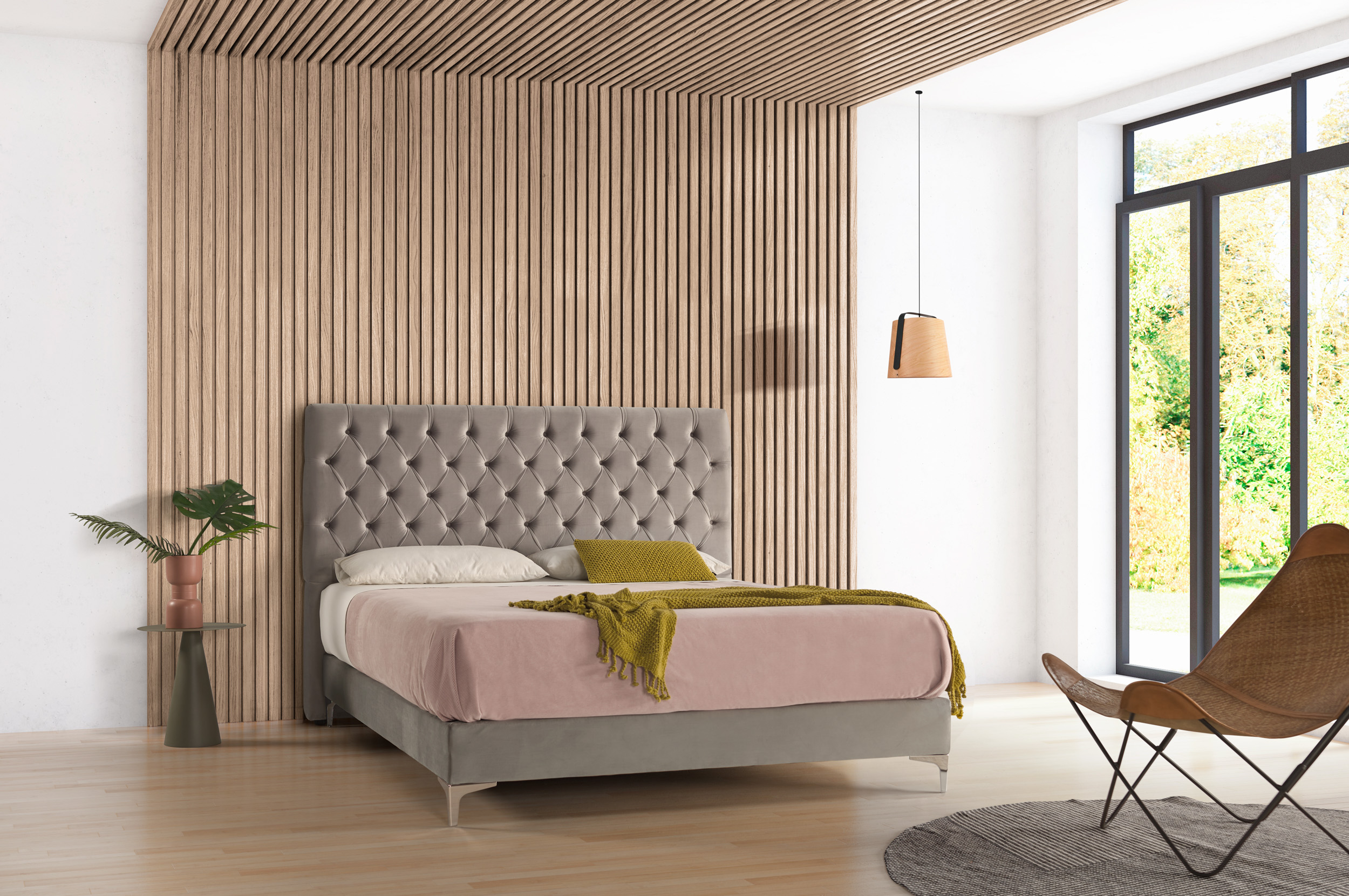 Bancada tapizada CON PATA METAL ROMA CROMO PLATA DE SERIE.