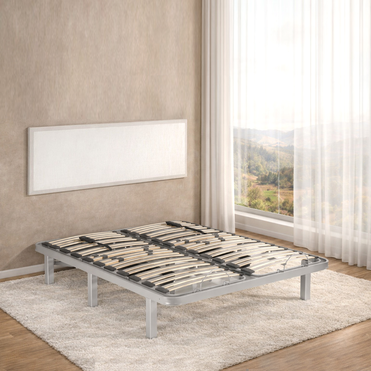 Base somier de lamas fija o articulada CON PATAS DE MADERA CILINDRO DE SERIE.