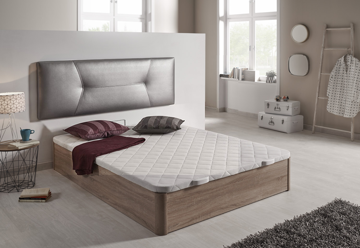 Opciones disponibles : Apertura lateral, tapa partida, modulo cajonera o zapatero, tapa TOP, somier tapizado, somier tapizado activo, tirador KUI o SLIM, doble pistón, a suelo, ruedas, zócalo, patas, apertura motorizada y cubrebisagras.
